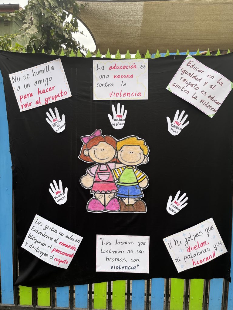 Nuestra comunidad educativa participó activamente en la jornada nacional “Presentes contra la violencia”, una instancia de reflexión y compromiso para promover una sana convivencia escolar. A través de actividades y dinámicas, estudiantes y docentes reforzaron la importancia del respeto, el diálogo y la empatía como pilares fundamentales para prevenir la violencia en cualquier forma.